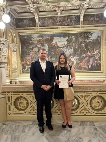 Lenke Regina Szabinát, 11.A osztályos tanulónkat a Magyar Nyelv Múzeuma által meghirdetett „Írj levelet Kazinczy Ferencnek!” versenyen a szakmai zsűri elismerő különdíjban részesítette. A nyelvújítónak írt érvelő levelében, Jókai Mór A sárga rózsa című kisregényét javasolta elolvasásra. Regina a klasszicizmus korának szellemisége mellett hangsúlyt fektetett a magyar néplélekre, a népi világ hiteles ábrázolására és az erkölcsi tanulságra. Díját és elismerő oklevelét az Anyanyelvápolók Szövetségétől, a Magyar Művészeti Akadémia Székházában, a Pesti Vigadó Dísztermében vette át a gálaest során. Felkészítő tanár: Szegedi László